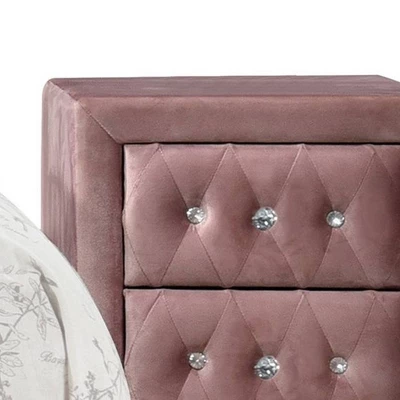 - Glamorous nightstand features 2-drawers with crystal-like button tuft details on itNightstand provides excellent storage to your bedtime essentials