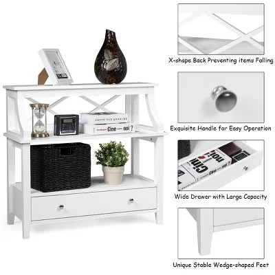 - Ample Storage Space: This console table is designed with 3-tier shelf and a sliding drawer to provide enough storage space for you to store different items. It is also easy to access. Some small decors like clock, vase or photo frame can be displayed on the top.