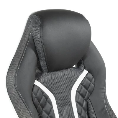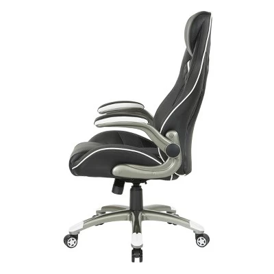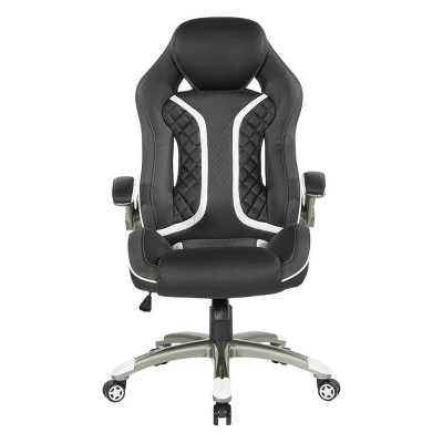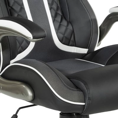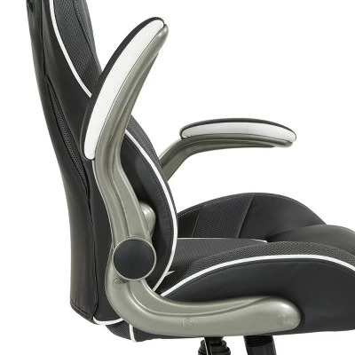 Generate a higher gaming experience with our Xplorer Gaming Chair, designed for hours of focused comfort. Stay in the game with fully padded flip arms, thick foam seat with coil springs, integrated lumbar support and headrest. Dominate the competition with the added edge of quick one-touch pneumatic seat adjustments, locking tilt control and full 360º rotation. Our multi-color accents and perforated air-flow material keeps you cool naturally and cleans up with just a wipe. The 5-star nylon base and dual wheel casters move effortlessly and are designed to standup against dirt and scuffs.