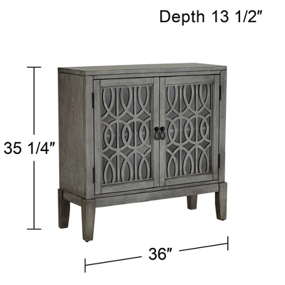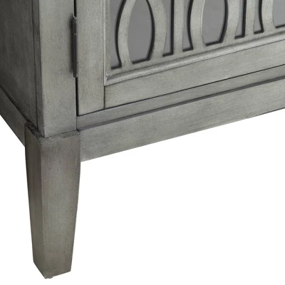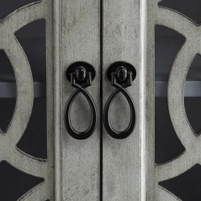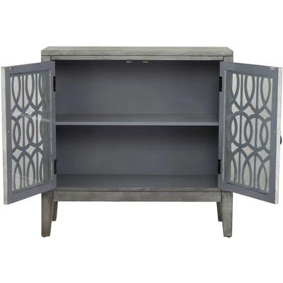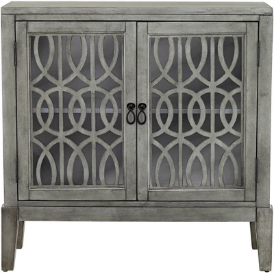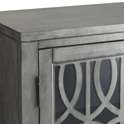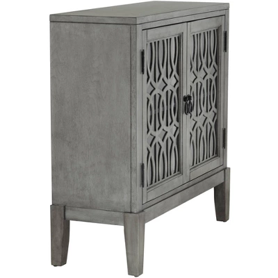 Create a beautiful place to store personal belongings when you use the Elias gray wood cabinet with two shelves. The MDF wood construction with a rich gray finish is offset by the intricate intertwined design on the two door faces. Two adjustable shelves inside let you determine the perfect amount of storage space for items.