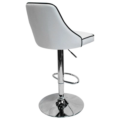 Add a top of the line design to your kitchen or game room. With a sleek and contemporary look, these bar stools are upholstered in faux leather with chrome legs. These stools can be adjusted from 23.5″H – 31.5″H seat height. It comes with a foot rest and can swivel 360 degree.Features : Finish: White with Black TrimmingMaterial: Faux Leather, ChromeIncludes Two (2) bar stoolsAssembly is requiredSpecifications : Stool Dimensions : 18″W x 20″DSeat Dimensions : (Seat) 23.5″ – 31.5″ ; (Back) 34″- 44″Weight Capacity : 300 lbsSurface Material : Lacquer, Chrome, Engineered Wood