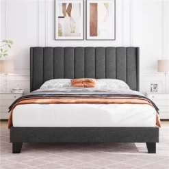 Yaheetech Upholstered Bed Frame With Wing Side