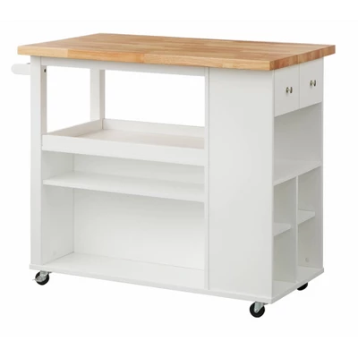 Costway Kitchen Island Trolley Cart On Wheels With Storage Open Shelves & Drawer White/Brown
