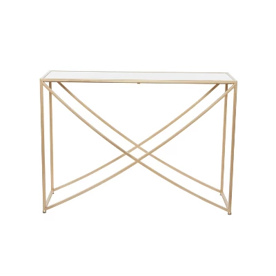 Bring a finishing touch to your home with an inviting appeal with this console table. A sturdy and long lasting construction for a years of enjoyment. Create a captivating entryway and corner table design with this narrow console table and place it against white-toned backgrounds for a charming visual delight. Designed with felt or rubber stoppers at the base that prevent scratching furniture and table tops, as well as sliding around. This item ships in 1 carton. Suitable for indoor use only. This item ships fully assembled in one piece. Maximum weight limit is 100 lbs. This is a single gold colored entryway table. Contemporary style.