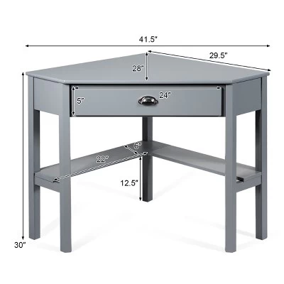 Do you need a computer desk or vanity table in your bedroom, but are frustrated because the room isn’t big enough? Our triangle corner table is a great option! This table can be placed in a corner and won’t take up a lot of space. Instead, it comes with an extra storage drawer and a bottom shelf that provides plenty of storage space. More details of thoughtfulness give you a better experience. This table also has non-slip foot pads to protect your floors. Moreover, the table top is made of high quality material that is waterproof and easy to clean. Elegant furniture with natural charm can bring a vintage atmosphere to your home. You can enjoy a private corner with this multi-functional corner desk, as it can be used as a computer desk, writing table, home office desk or dressing table