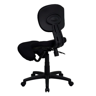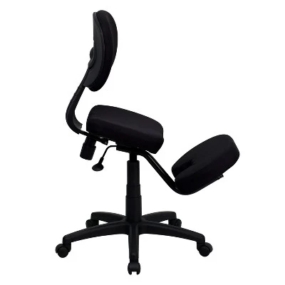 This ergonomic chair resembles the look of a conventional task chair, but with the inclusion of a kneeling pad. You’ll be able to regain your body’s natural posture with this ergonomic kneeling chair with included back. Kneeling chairs sit you in a position to allow your diaphragm to move efficiently and promote better breathing and blood circulation. Chair easily swivels 360 degrees to get the maximum use of your workspace without strain. The pneumatic adjustment lever will allow you to easily adjust the seat to your desired height. This chair can be used as a permanent office chair or used in conjunction with a conventional task or executive office chair.