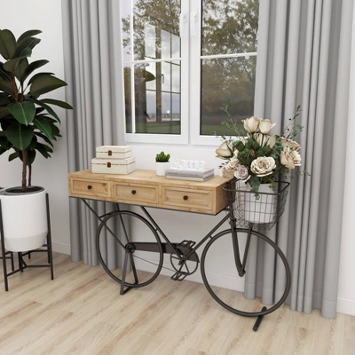 - ā¢Large bicycle console table is crafted with solid iron and wood and mdf material