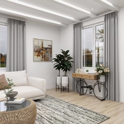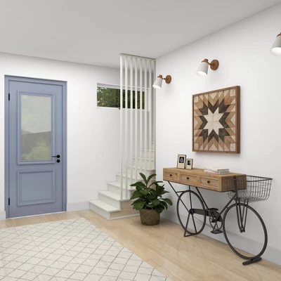 - ā¢Farmhouse console table highlights a natural wood brown finish with charcoal black bike frame