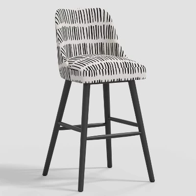 Anchor your kitchen, dining room or home bar with this Geller Modern Counter-Height Bar Stool in Patterns from Threshold™. Built on a wooden frame with a black finish, this counter stool features a square, armless silhouette with a padded seat and a complementing ergonomic backrest. Cotton upholstery with a contemporary pattern adds style to your decor, while the four tubular, flared legs accompanied by sleek foot rails offer better balance.
