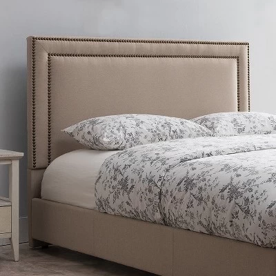 Baffin upholstered headboards offer a premium look at a value price point. With a look that blends with both traditional and modern decor, the Baffin makes your bed distinctive. Neatly tailored taupe linen over a padded, wood frame includes two rows of striking nail-head trim. All hardware is included. Fits Full/Queen or King/California King bed frames.
