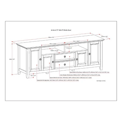Halifax Solid Wood 72 inch Wide Transitional TV Media Stand For TVs up to 80 inches. The unit features cord management cut-outs for easy installation of TV and media components.. Extra wide TV Stand is perfect for TVs up to 80 inches. Handcrafted with care using the finest quality solid wood. Style includes elegantly tapered legs, molded crown edged table top, panel framed drawer fronts, metal drawer glides and Antique Pewter round decorative knobs. Size: 19″ d x 72″ w x 26″ h. Efforts are made to reproduce accurate colors, variations in color may occur due to computer monitor and photography. The product is warranted to be free from defects in material and workmanship for a period of (1) year from the date of purchase to the original owner.