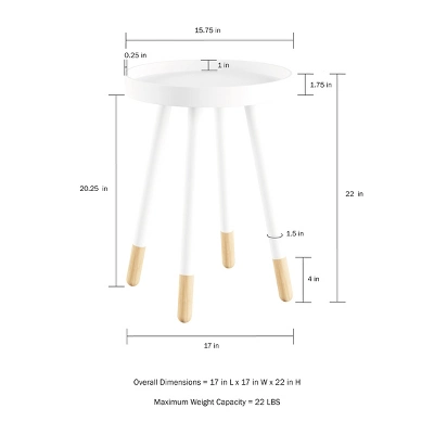 - Dimensions: Overall: (L) 17″ x (W) 17″ x (H) 22″; Tray Top: 15.75″ Diameter x (H) 1.75″