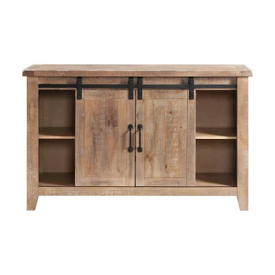 The Highland Dining Collection has a lovely rustic farmhouse aesthetic. Offered in dining or counter height table variations, with complimenting chairs and stools. The sideboard features beautiful metal gliding barn doors concealing ample storage space, along with three large pull out drawers.Â