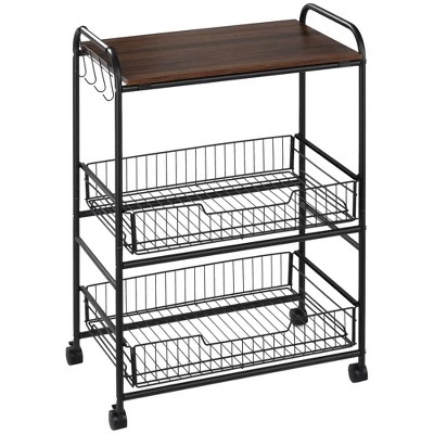 - Two Pull-out Baskets: The cart on wheels has an open counter and two pull-out baskets for easy access to kitchen utensils, toiletries, make-up, books, and more. The wire basket allows air to circulate, making it suitable for storing vegetables, fruits, and folded linens as well.