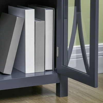 Quickly add that needed storage and get kitchen supplies clutter-free with this HOMCOM kitchen buffet cabinet. Framed tempered glass makes this sideboard buffet stylish and keeps the item without dust. The sideboard with two storage cabinets and a tabletop provides a versatile storage solution. Customize your home space with the interior adjustable shelves that move to fit your needs. This HOMCOM buffet sideboard will create a classic feel and grace your house.