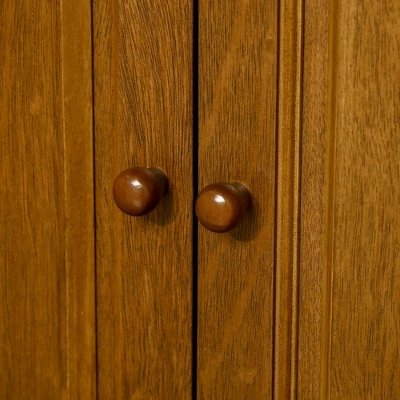 - Natural Style: This microwave cart has a natural, rustic wooden look that will fit most home décor styles. The recessed base border and door panels add a touch of extra charm to the design.