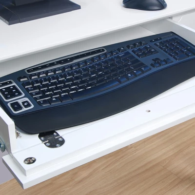 You’ll wonder how you ever got work done without this Home Office Deluxe Wood Storage Computer Desk from Saracina Home. This three-drawer desk features a drop-down keyboard tray, filing slots and a hanging file drawer. The configuration of this item makes it an excellent student desk. It looks nice in a home office, bedroom or any other room where you need a desk.