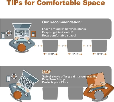 - Featured Function: 360° Swivel Stools with lifted handle for rotation and easy height adjustment. Our bar stools are suitable for any kitchen island heights in 34″-46″.