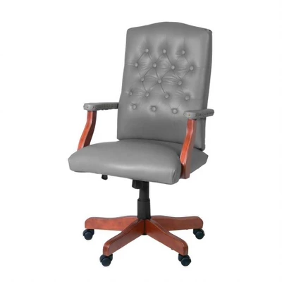 Bring an air of Ivy League distinction to any traditional home or professional office setting. A beautiful hardwood Mahogany frame, timeless brass trim accents, durable vinyl upholstery and elegant button tuft stitching make the Ivy League Swivel a must-have addition. Available in classic black finish to match any decor. The Ivy League chair looks great in libraries, studies and waiting rooms, too. Chair functions include pneumatic seat height and tilt adjustments. Explanation of functions- 360 degree swivel: Chair is able to rotate 360 degrees in either direction. Seat height: Chair’s seat can raise and lower allowing the user’s feet to remain flat on the floor. Center Tilt: Central pivot point allows the user to recline seat and back of chair at a fixed angle. Tilt tension: Allows user to adjust the amount of force that it takes to adjust the seat back angle. Tilt Lock: Locks the chair’s back angle and inhibits it from being repositioned. All Regency chairs are backed by a 5-year limited manufacturer’s warranty on chair bases and frames and a 2-year limited manufacturer’s warranty on chair mechanisms and upholstery.