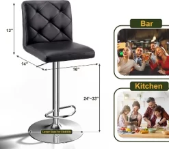 Costway Set Of 2 Bar Stools Adjustable Swivel Kitchen Counter Bar Chair PU Leather Red Full Back