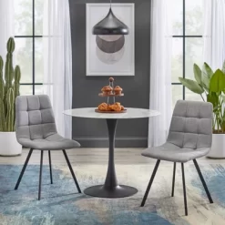 31.5” Haven Small Round Dining Table With Metal Pedestal Dining Table Base-Maison Boucle