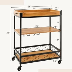 Costway 3-Tier Kitchen Cart Island Rolling Rack Serving Trolley Detachable Top & Glass Holder