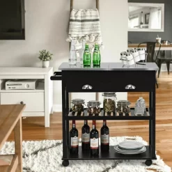 Costway Kitchen Island Cart Rolling Utility Trolley Stainless Steel Top Wine Rack