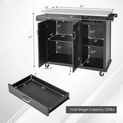 Costway 4-Door Rolling Kitchen Island Cart Buffet Cabinet W/ Towel Racks Drawers WhiteBlack