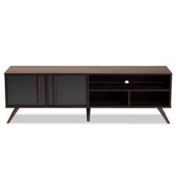 2 Door Naoki Two-Tone Wood TV Stand For TVs Up To 65″ Gray/Walnut – Baxton Studio