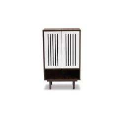 2 Door Meike Two-Tone Wood Shoe Cabinet Walnut/White – Baxton Studio