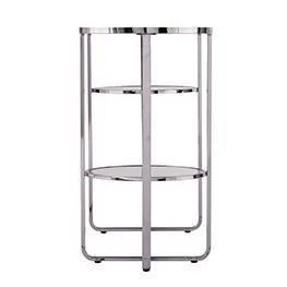 Embrace sleek style with the Aiden Lane Malissa Mirrored Console Table w/ Storage. A metallic frame crisscrosses beneath two round display shelves, crafting glossy shine in an asymmetrical design. The mirrored tabletop and shelves reflect books and art deco décor, while the multifunctional design slides into your entryway or behind your couch. Add a touch of class to your home with this long sofa table serving up party appetizers in your dining room or stacking up family photos and trinkets in the hall.