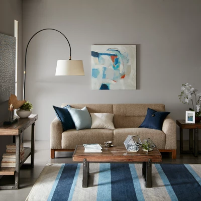 Update your living space with the Nico Console Table. This console table features a table top constructed from elm veneer with a heavy distressed metal frame. The wood and metal combo makes a great piece for an industrial inspired room. The lower shelving allows for extra storage space. Assembly required.