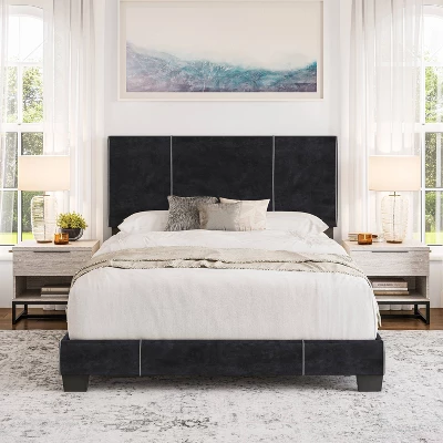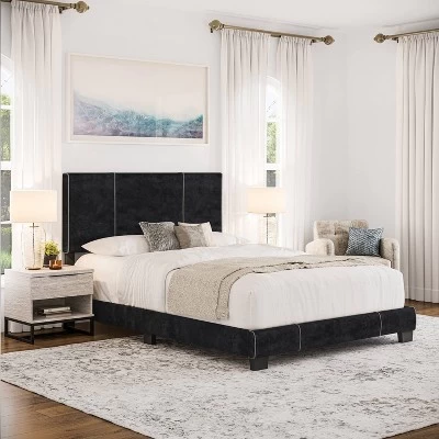 The Lucena Velour Platform Bed’s clean, contemporary styling and bold contrasting piping details create a soothing structural appeal that’s handsome enough to be the center of attention, or sophisticated enough to suit any existing guest room or master bedroom’s styling and furnishings. With its soft, velvety velour fabric that covers the entire platform bed, and corded piping which creates subtle features that accentuate its design, the Lucena has a truly unique, modern look. The 4 slat support system is designed to be used with a boxspring or foundation, allowing the mattress to sit at a comfortable height off the ground. Built to last for years to come, the Lucena uses ultra-sturdy, solid wood center legs for additional support and mattress longevity. The Lucena can easily be assembled by one person in under 30 minutes using the provided tools and hardware.