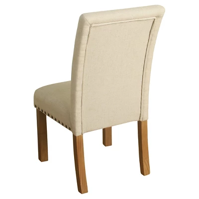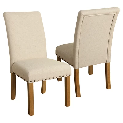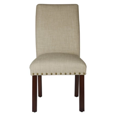 This classic parsons dining chair blends the best of a traditional parsons chair frame with modern styling and nail head trim. Upholstered in linen-like fabrics with rich wood legs in a range of finishes, this dining chair will set the tone for elegant evenings around the table. Comfortable and attractive for dining, it can also double as an accent chair in a bedroom or living room. Offered in a range of colors and fabrics, the HomePop parsons dining chair is easy to assemble and maintain. Sold as a set of 2.
