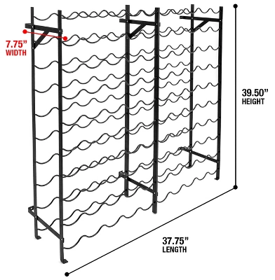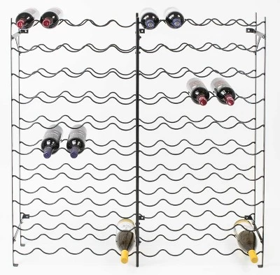 - STURDY DESIGN Made of sturdy metal construction with smooth black finish Features rows of scallop/wave shaped shelves Solid structure prevents wobbling, tilting, or falling Holds most standard wine bottles Wine Bottles NOT INCLUDED