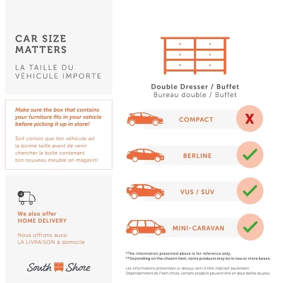 - 5-YEAR LIMITED WARRANTY: South Shore is proud to stand behind this 6-drawer double dresser with an exclusive 5-year limited warranty. Shop with confidence knowing your purchase is always covered.