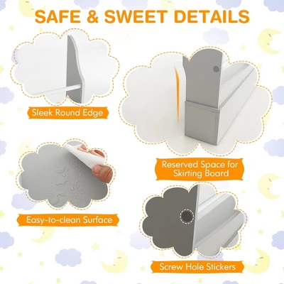 - Safe & Sweet Details: The sleek round edge prevents kids from being scratched, while the screw hole stickers cover the unsightly holes for a safe and clean look. Besides, there is reserved space for skirting board at the back, which allows the bookcase to fit the walls as close as possible.
