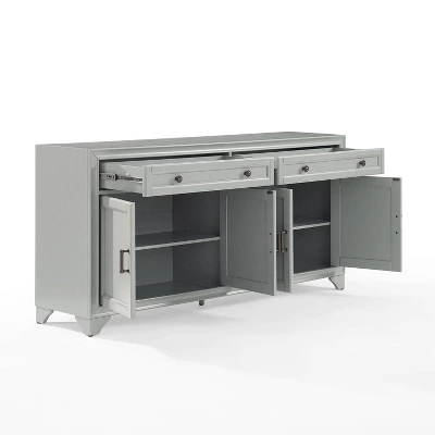 Whether you love a traditional look or a modern farmhouse vibe, the Tara Sideboard fits the bill. Featuring two wide full-extension drawers and two large cabinets with adjustable shelves, this sideboard offers high-end home organization. Use the Tara Sideboard as a buffet for your dining room, a TV stand for your living room, or a console for your home office. OVERALL PRODUCT DIMENSIONS: 61”W X 15”D X 29.63”H