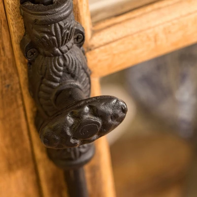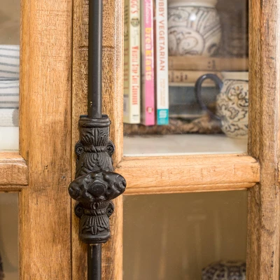 The Tucker Curio cabinet from the Signature Collection by StyleCraft Home Collection features clear tempered glass window panes as the door panels, classic French hardware door locks, two removable shelves, and a fixed interior shelf. Its two-toned white and natural finish lends a refined touch to this exquisite design. The cabinet is crafted from mango wood. It’s suitable for just about any room, from the living room to home office. Complete with a natural stain finish, this simple yet on-trend design will lend understated, elegant style to any room. Place it wherever you need extra storage, like the bedroom or foyer. This piece exemplifies superior product design and great styling. It will pair well with farmhouse styling. Due to lighting and monitor differences, actual colors and finishes may vary slightly from what appears online.