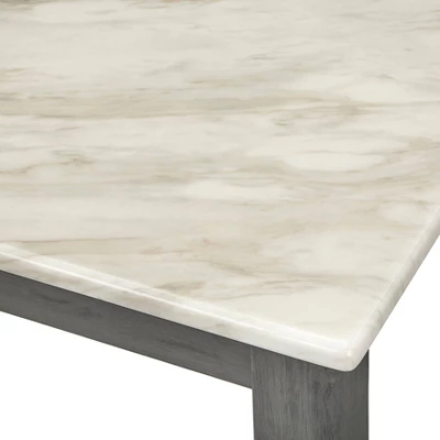 Bring contemporary simplicity to your dining room with the Welland Dining Table by Lifestorey. Tailored lines enrich the parson style dining table with its white faux marble top, accented with gray tonal veining. The square block legs are crafted of solid rubberwood and finished in a rich dark gray finish, harmonizing a well-balanced two-tone sophisticated look.