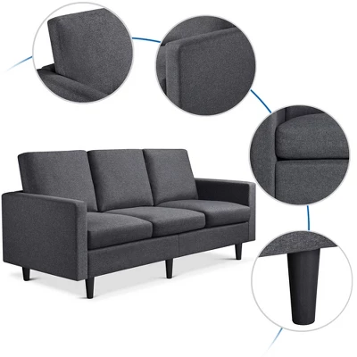 - Crafted of an engineered wood frame and reinforced with 6 sturdy plastic legs, this living room couch is sturdy and stable enough for years of use. Foam-filled seats and backrests aim to provide you with a superior sitting experience. The linen fabric covering is soft, breathable, and skin-friendly, making it ideal for use in any season. Moreover, the seat and back cushion covers are removable and machine-washable.