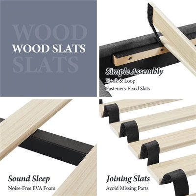 - 【Headboard With Wing Side Design】Designed with a wing side on the wide upholstered headboard, it locks into place to prevent slipping and mattress movement.